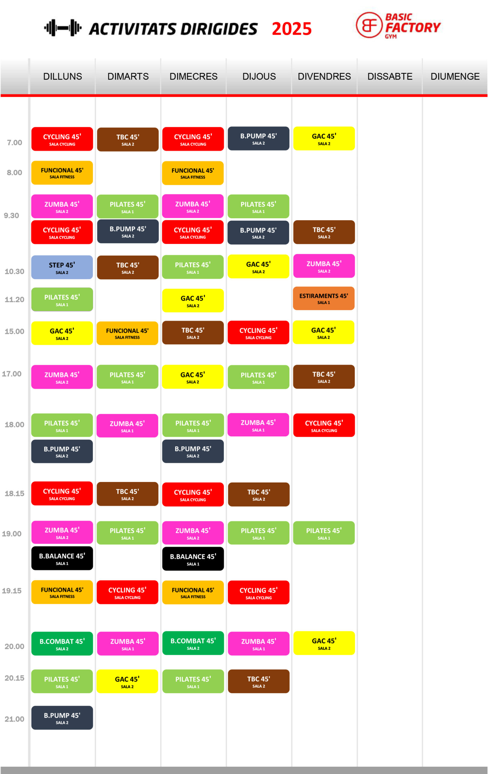 HORARI activitats dirigides (*pot esta subjecte a canvis)